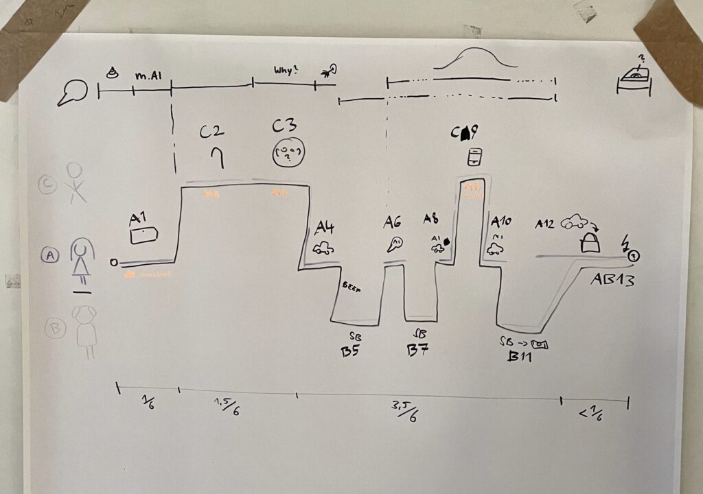 A look into AI training data centers -> dialogue with “test person” – stroyline – interaction fails somehow – on screen: “FAIL – ERROR – TRY AGAIN/NEXT TEST SUBJECT” Working like a speed dating process: some interactions work well/have good outcomes, some fail