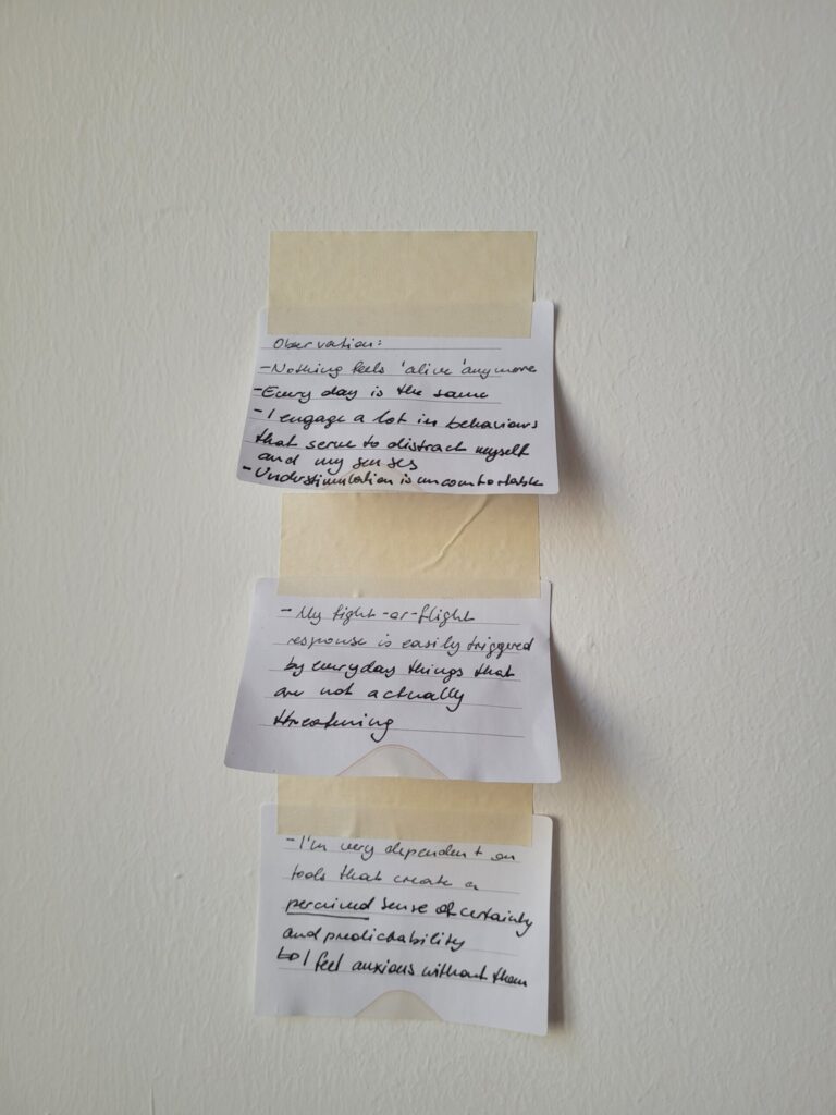 Additionally, I feel my fear responses are often unproportional or not constructively directed towards the things that should actually scare me, and where my fear could be used and reframed into constructive action. Instead, I am existing in a state of constant underlying anxiety that can only be elevated but is also reinforced by the behaviours of overstimulation and distraction/avoidance I described above. This feels not only paralysing and unconstructive, but is also just exhausting for my body and mind.