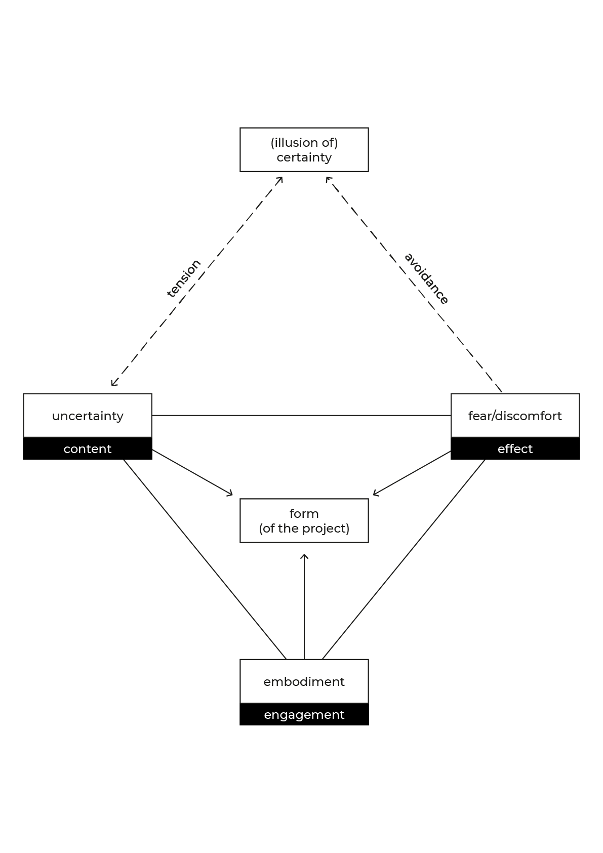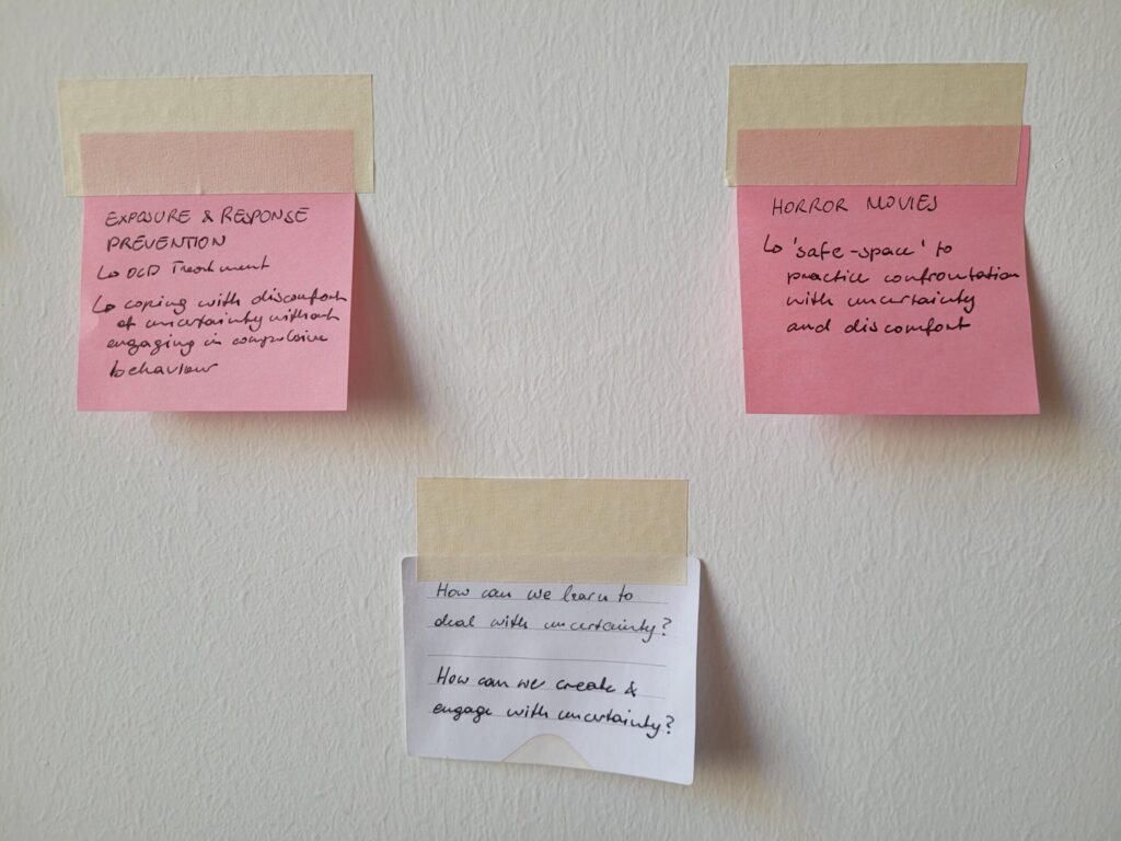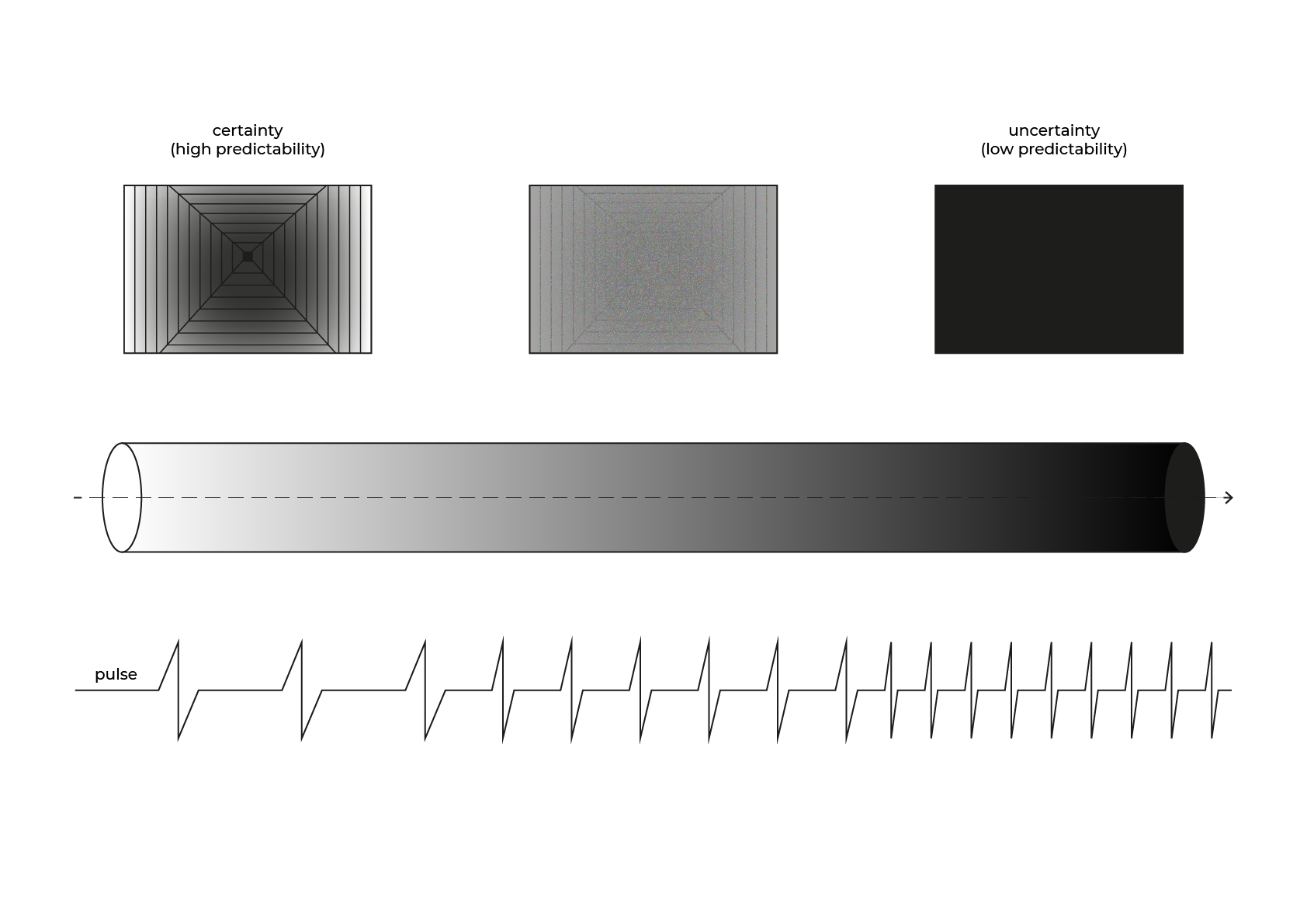 It would be an audio(visual) installation that reacts and gives feedback to the pulse of the viewer. I want to implement the connection to the heart rate in order to adapt the structure and pace of building suspense and uncertainty to the physiological experience of the viewer, as well as reflect their own (physiological) reaction back to them. The goal of the experience should be to make people question and reflect on their own ability and mechanisms they use to cope with uncertainty and fear (of the future) and possibly enable them to reframe how they experience fear and uncertainty in a way that is productive.