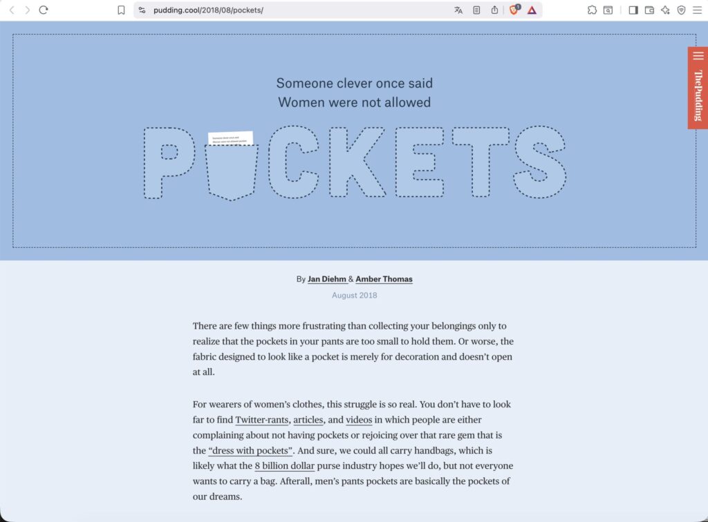 This becomes apparent even in the smallest, most everyday things. A glance into a place that is not really visible, and for that reason almost intimate and personal: the trouser pocket. In a small class survey, I asked my fellow students what they carry on their bodies close to them. Phone, wallet, wireless earbuds, keys, bike lights, a piece of straw, loose coins, rubbish, lighters, vapes, lip balm, one-time-code tags for work. Some had no pockets at all, or ones far too small: the trousers from the “women’s section”. Research suggests that oversized pockets on women are considered unflattering. A minor detail, one might think. But it says something fundamental: the emphasis on the body in service of sexualisation takes precedence over functionality – over the ability to carry valuables on one’s person: my keyring, to open workspaces, to secure my home – or the tool that gives me a sense of being slightly safer late at night, when I grip it between my fingers walking home alone.