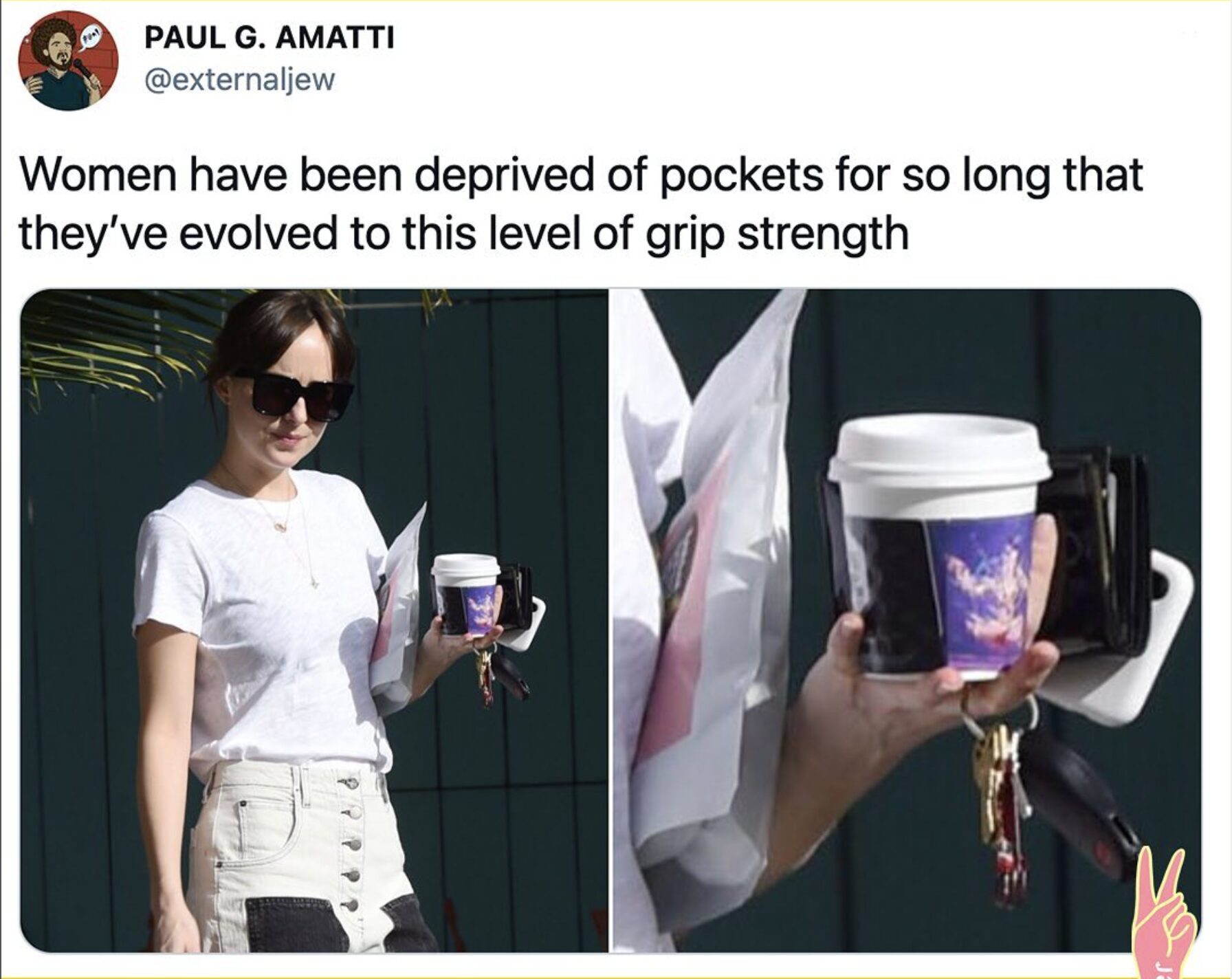 Das zeigt sich auch im Kleinsten, im Alltäglichsten. Ein Blick in einen Ort, der nicht wirklich sichtbar ist und dadurch fast schon intim und persönlich wirkt: die Hosentasche. In einer kleinen Klassenbefragung fragte ich meine Kommilitoninnen, was sie so an ihrem Körper – also nahe bei sich – tragen. Handy, Portemonnaie, kabellose Kopfhörer, Schlüssel, Fahrradlichter, ein Stück Stroh, einzelne Münzen, Müll, Feuerzeuge, Vapes, Lippenbalsam, Einmalcode-Anhänger für die Arbeit. Einige hatten auch keine oder viel zu kleine Hosentaschen – die Hosen aus der „Frauenabteilung”. Recherchen zufolge gelten zu große Hosentaschen bei Frauen als unförmig. Eine Kleinigkeit, möchte man meinen. Aber sie sagt etwas Grundlegendes: Die Betonung des Körpers, die der Sexualisierung dient, hat einen höheren Stellenwert als die Handlungsfähigkeit – als die Möglichkeit, Wertsachen am Körper tragen zu können: meinen Schlüsselbund, um Arbeitsräume zu öffnen, mein Zuhause zu sichern – oder auch das Werkzeug, das mir spät abends das Gefühl gibt, etwas sicherer zu sein, wenn ich es zwischen meine Finger klemme und alleine nach Hause gehe.