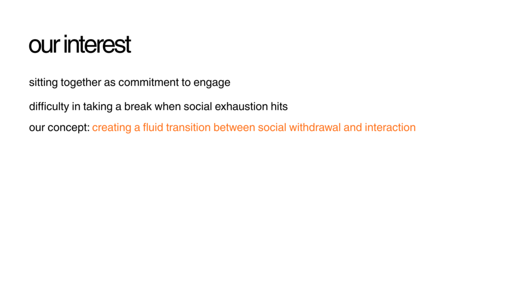 our installation should create a fluid and comforting space that makes it easier, and puts emphasis on this transition.