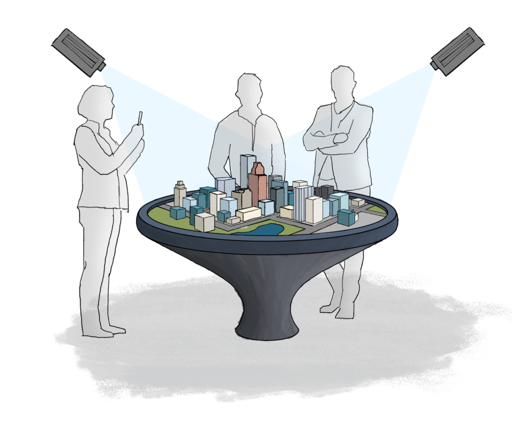 My first idea was to give an AI agent control over a fictional city. This would be visualized through a city model brought to life by projection mapping. Visitors would provide the system with very little input, based on which the agent would make decisions about life in the city. This would be visualized through changing facades, transforming landscapes and different vehicles moving through the streets.
