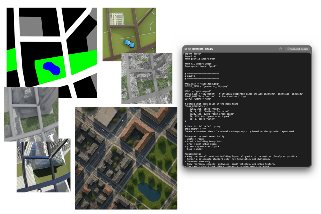 To test my idea, I built a pipeline that allows you to change the facade of a small tower via text prompts in real time. While it did work, generating each new variation with three facades took over one minute. This meant that real-time AI-generated imagery as part of a small and fast-paced experience is not feasible. Additionally, manipulating a system on the scale of a city would likely be too complex.