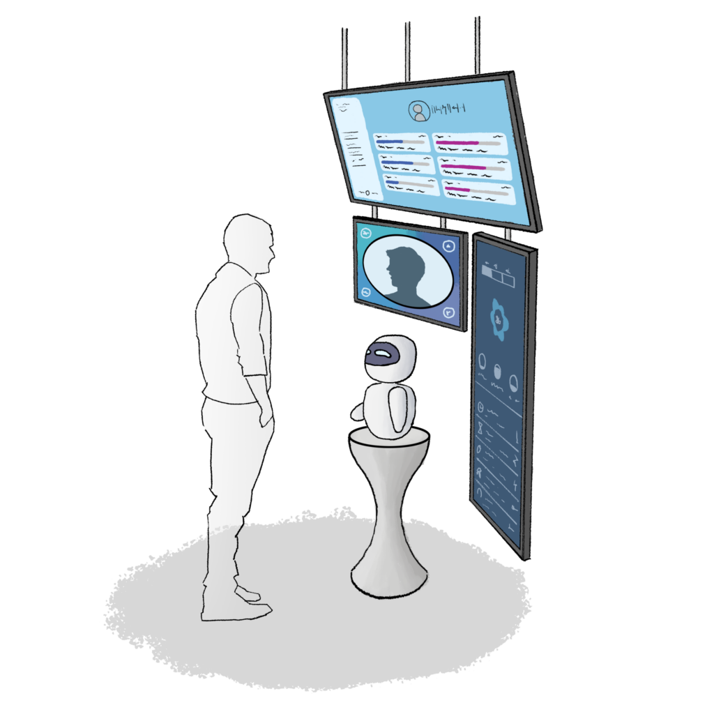 My next idea was to shift the focus to an individual person. In this setup, an AI system would analyze various areas of a person’s life and recommend improvements. This could range from improving sleep cycles to dietary recommendations or workout plans. The interaction would be guided by a small robotic companion.